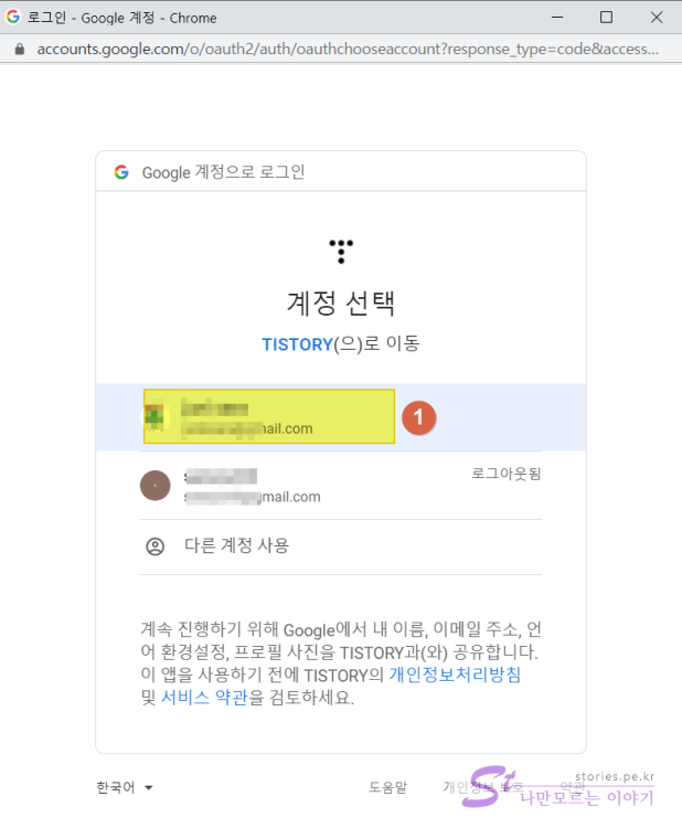 원하는 아이디로 구글 로그인을 합니다.