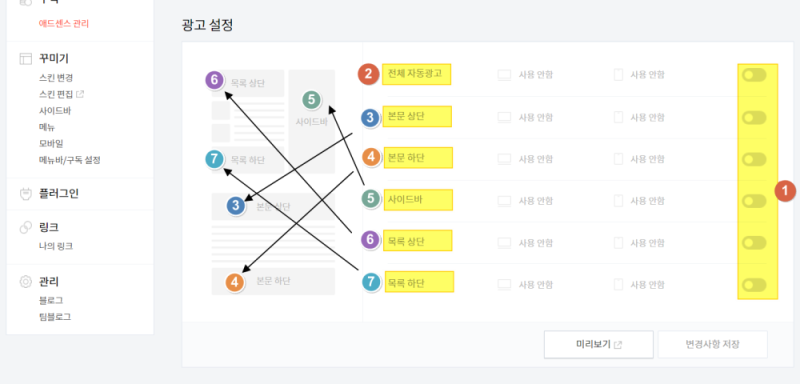 애드센스 광고 설정