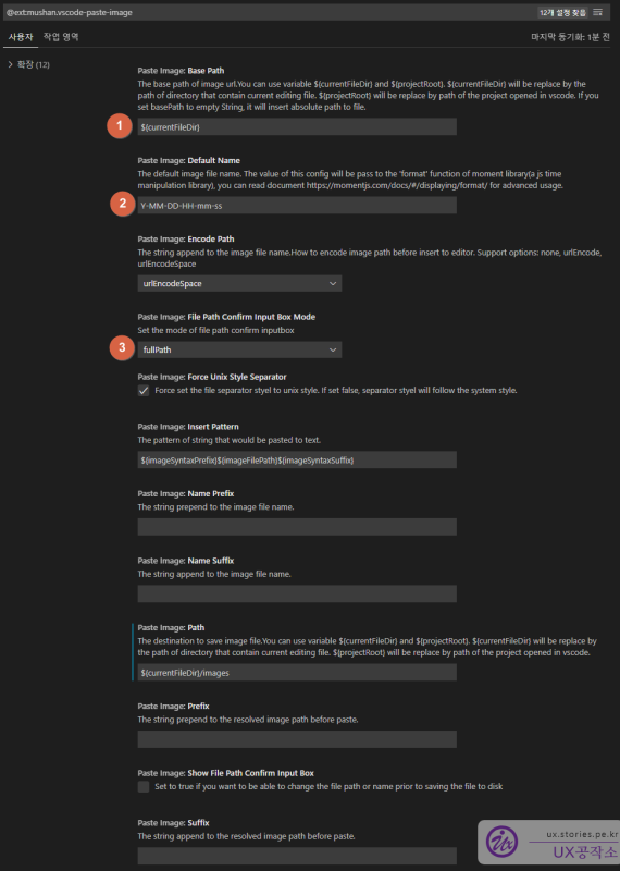 Paste Image를 몇 가지 설정하면 나에게 맞게 커스터 마이징 할 수 있어요. 모든 부분을 설명하기는 어렵고, 간단하게 몇 가지 설정하는 방법입니다.
