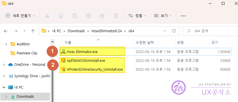 그 후에 2번인 np~~ 어쩌고하는 Uninstall 파일 2개도 실행해서 제거해 주면 됩니다.