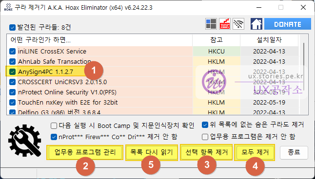 - 구라제거기로 제거가 되지 않는 프로그램을 직접 제거할 수 있는 Uninstall 프로그램