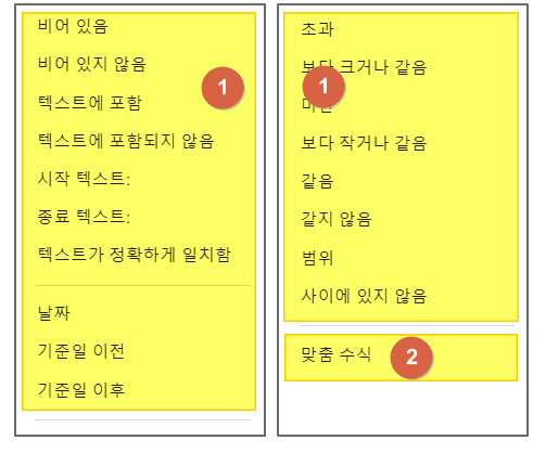 - 다양한 조건이 있지만 여기서는 맞춤 수식을 선택합니다.