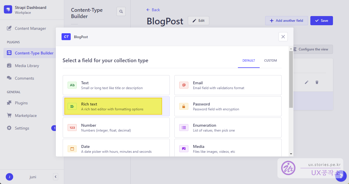 이번에 많은 내용을 입력해야 하므로 Rich text를 선택합니다.