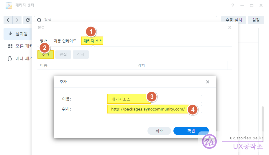 http://packages.synocommunity.com/를 입력합니다.