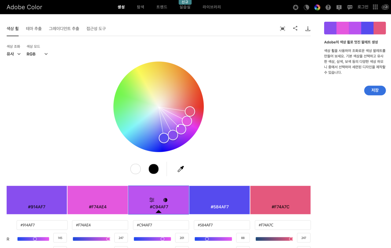 역시 Adobe는 다른것 같네요. 예전에는 Adobe Kuler로 서비스를 했던것 같은데 지금은 명칭을 정상적인 스펠링으로 사용하고 있는것 같습니다.