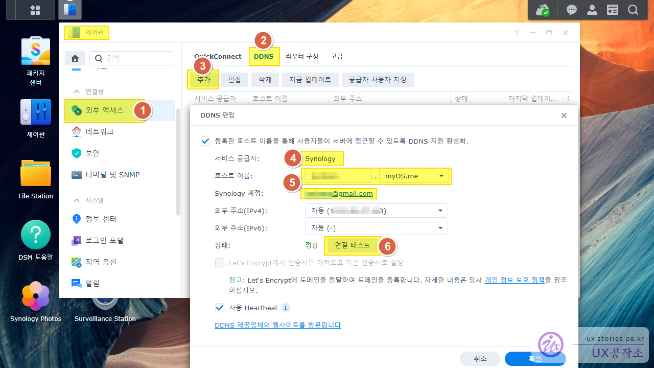 3. DDNS 설정 : 시놀로지 나스에서 DDNS를 설정합니다.