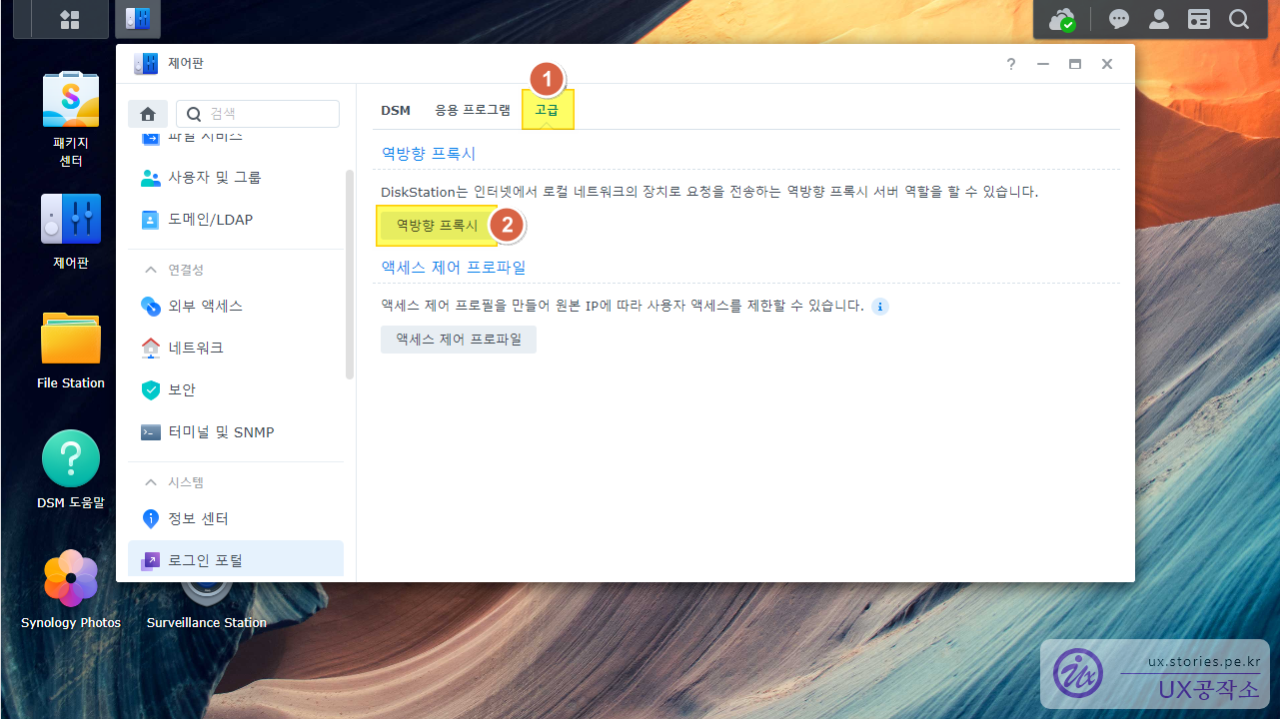 역방향 프록시를 설정하기 전에 먼저 DSM을 접속할수 있게 설정을 해야겠지요?