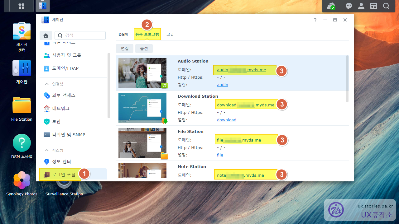 웹브라우저에서 시놀로지 나스로 연결할 경우 원래는 https://na.myds.me:5009로 접속해야하는데, 위와 같이 설정하면 https://dsm.na.myds.me로 뒤에 포트 번호 없이도 접속을 할 수 있습니다.