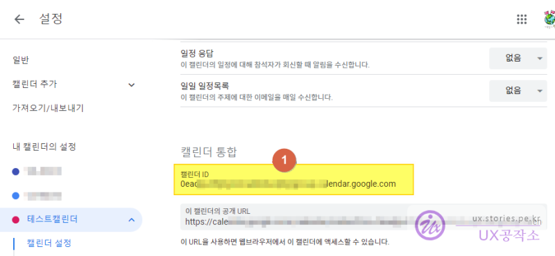 - 캘린더 ID를 잘 기억해 놓습니다. 나중에 이 ID를 활용할 예정입니다.