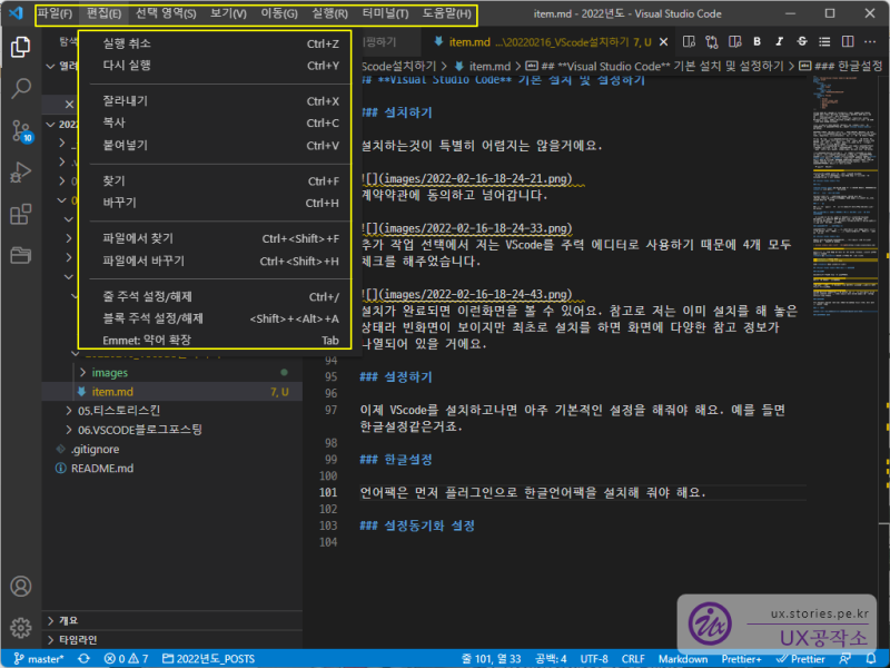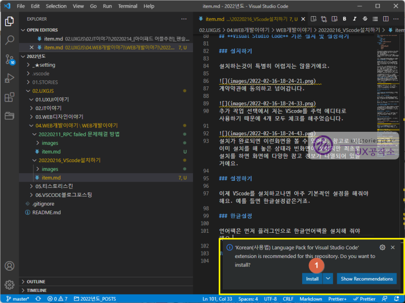 이제 VScode를 설치하고 나면 아주 기본적인 설정을 해줘야 해요. 예를 들면 한글 설정 같은 거죠.