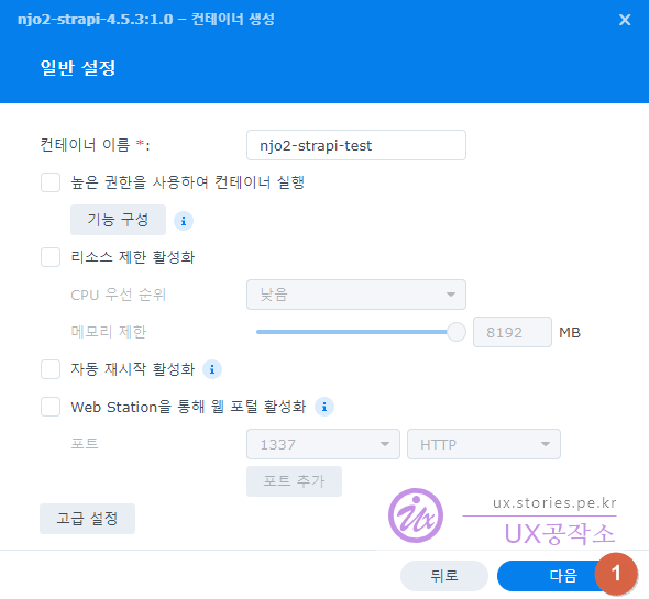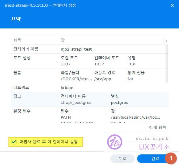시놀로지 도커에서 STRAPI V4 서비스하기