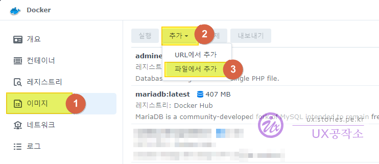 이제 이 이미지를 시놀로지 도커에 등록을 합니다. 시놀로지에서 도커 프로그램을 실행시킵니다.