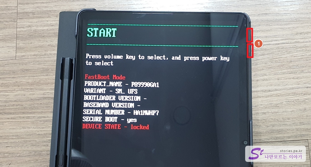 전원을 켬과 동시에 전원 버튼 + 볼륨 업 버튼을 동시에 누릅니다.