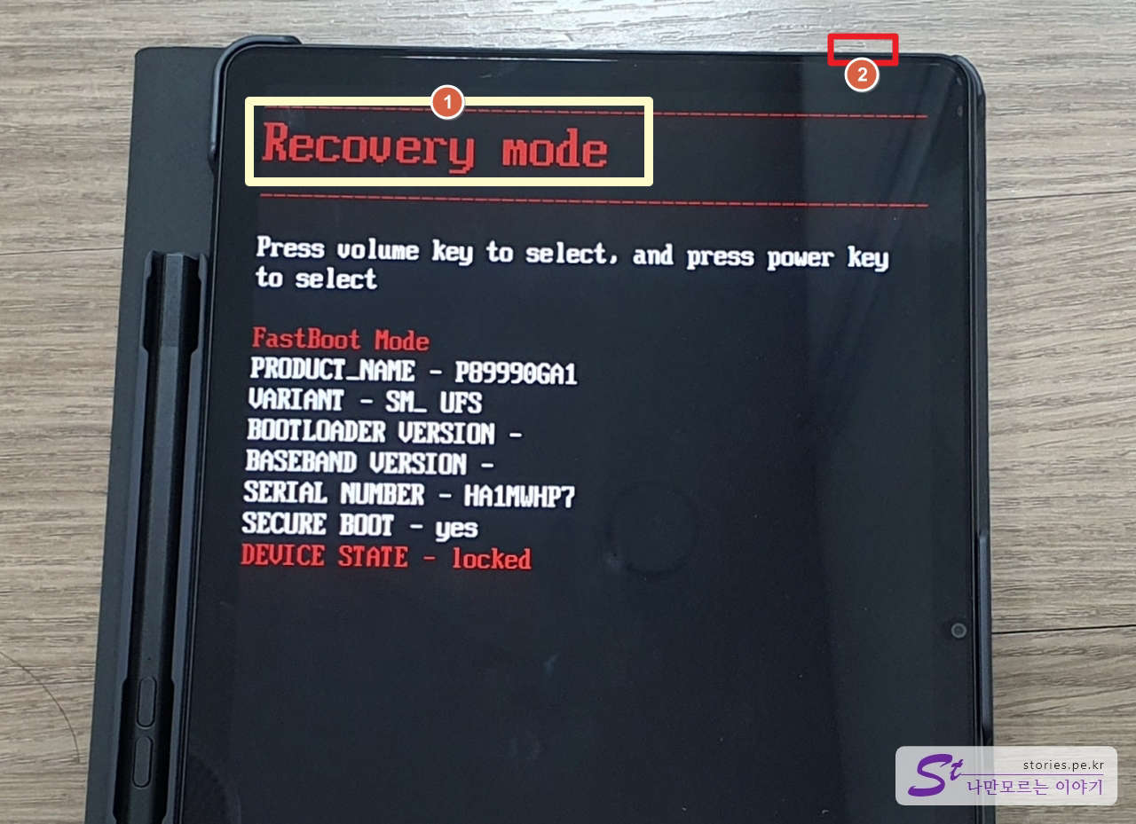 Recovery Mode(복구모드)를 확인합니다.- 전원 버튼을 클릭하여 리커버리를 실행합니다.