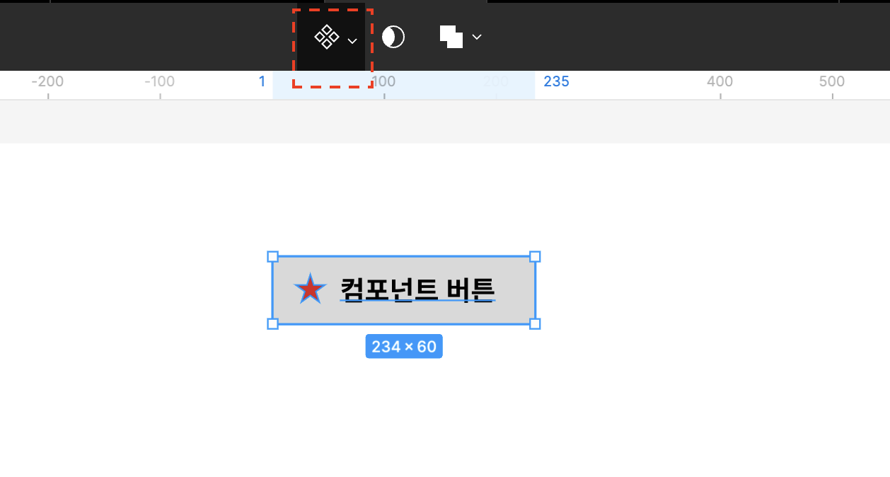 두 번째 방법은 아래와 같이 컴포넌트화 시킬 요소를 모두 선택한 후 화면의 상단에 있는 컴포넌트 생성 버튼을 클릭하는 방법입니다.