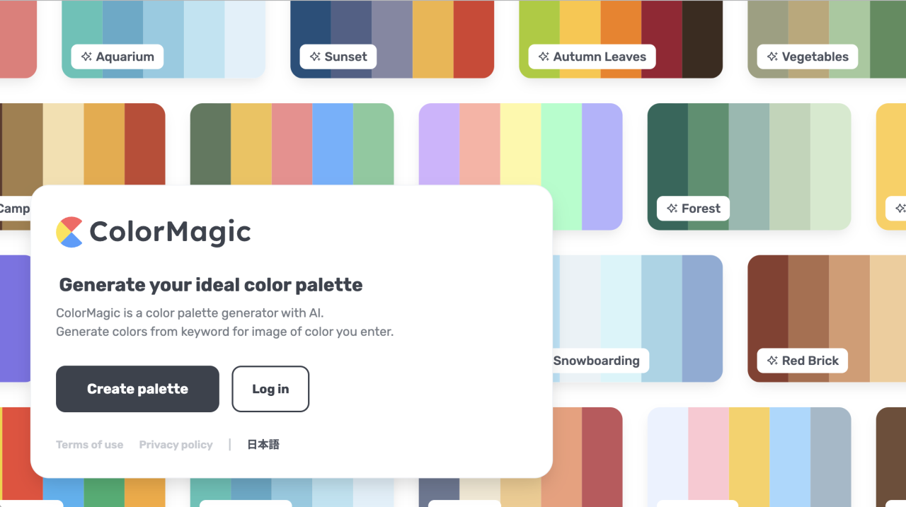 ColorMagic은 단어를 입력하면 관련된 색상 팔레트를 제시해주는 AI 기반 툴입니다. 봄, 여름, 가을, 강아지, 숲과 같은 단어를 입력하면 관련된 색상을 한눈에 확인하실 수 있습니다. 회원 가입을 하지 않는 경우에는 3번까지만 이용하실 수 있다고 합니다. 놀랍게도, 이 서비스는 한글도 인식하여 상대적으로 정확한 색상 팔레트를 제공합니다. 이 서비스를 활용하시면 블로그나 웹사이트에 색감을 살리는데 도움이 될 것 같습니다.
