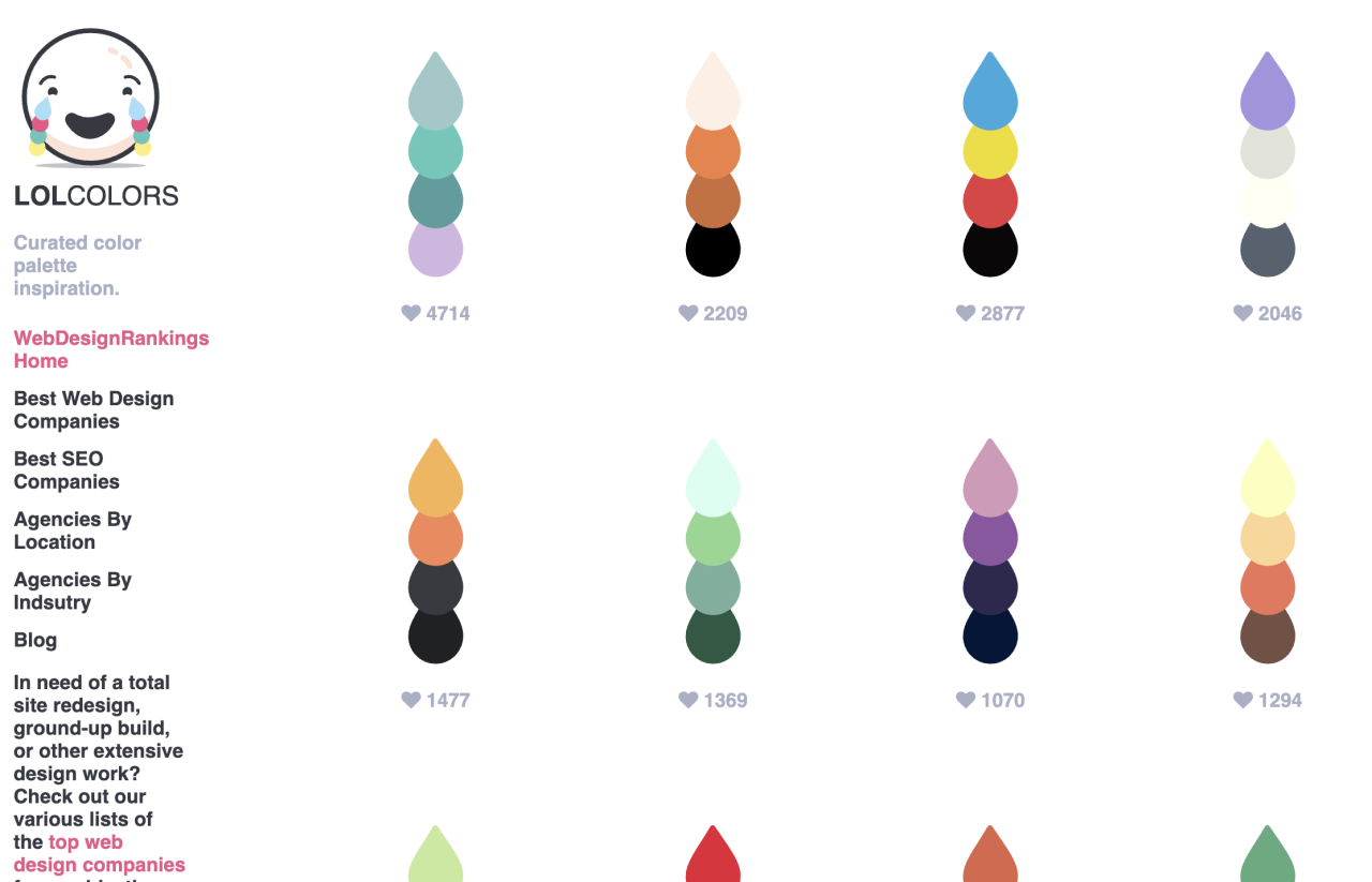 해당 웹사이트는 웹디자인에 대한 랭킹을 제공하며, 여러 색상 팔레트에 대한 정보도 제공합니다. 기존에 설정된 여러 색상 팔레트에 대해 누구나 좋아요 랭킹을 부여할 수 있어요. 더 많은 좋아요를 받은 색상 팔레트을 선택하고 커스터마이징하여 사용한다면 매우 유용할 것 같습니다.