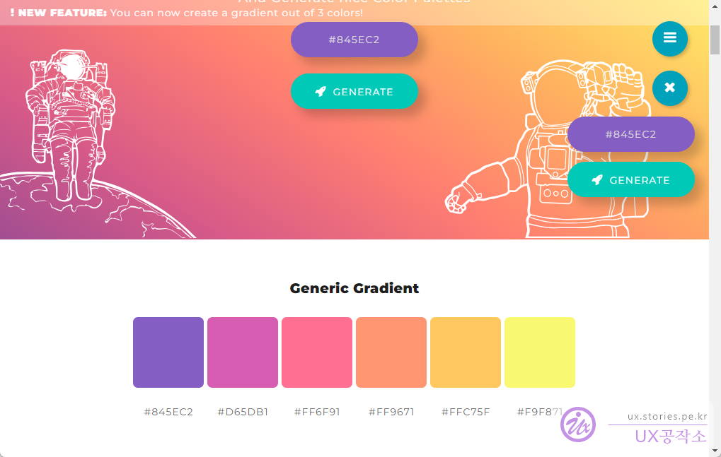ColorSpace는 특정 색상을 선택하면 해당 색상과 조화를 이루는 다양한 컬러 팔레트를 제공해줍니다. 실제 웹사이트를 개발할 때 색상 아이디어를 찾는 데 매우 유용할 것으로 보입니다.